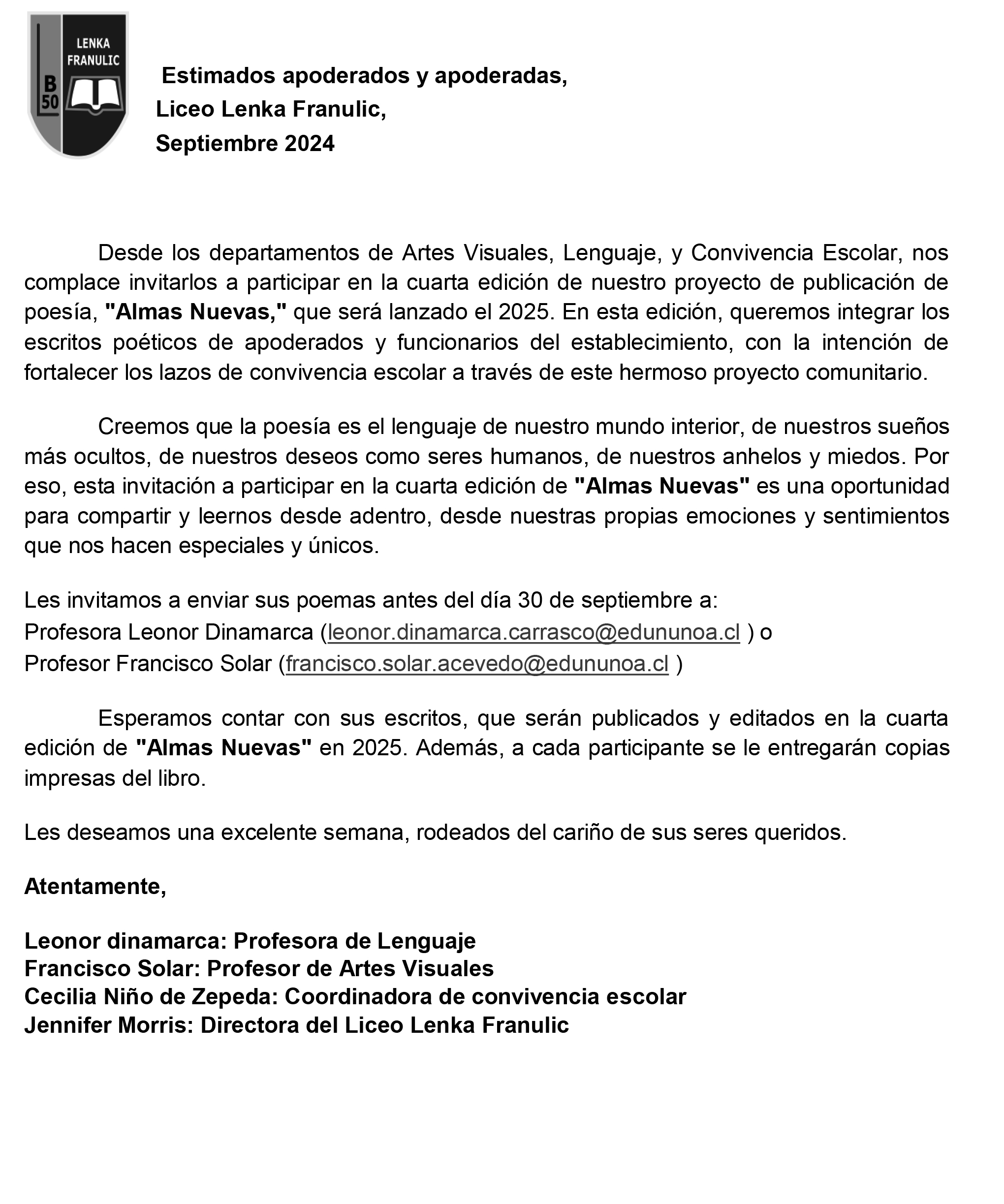 Estimados apoderados: