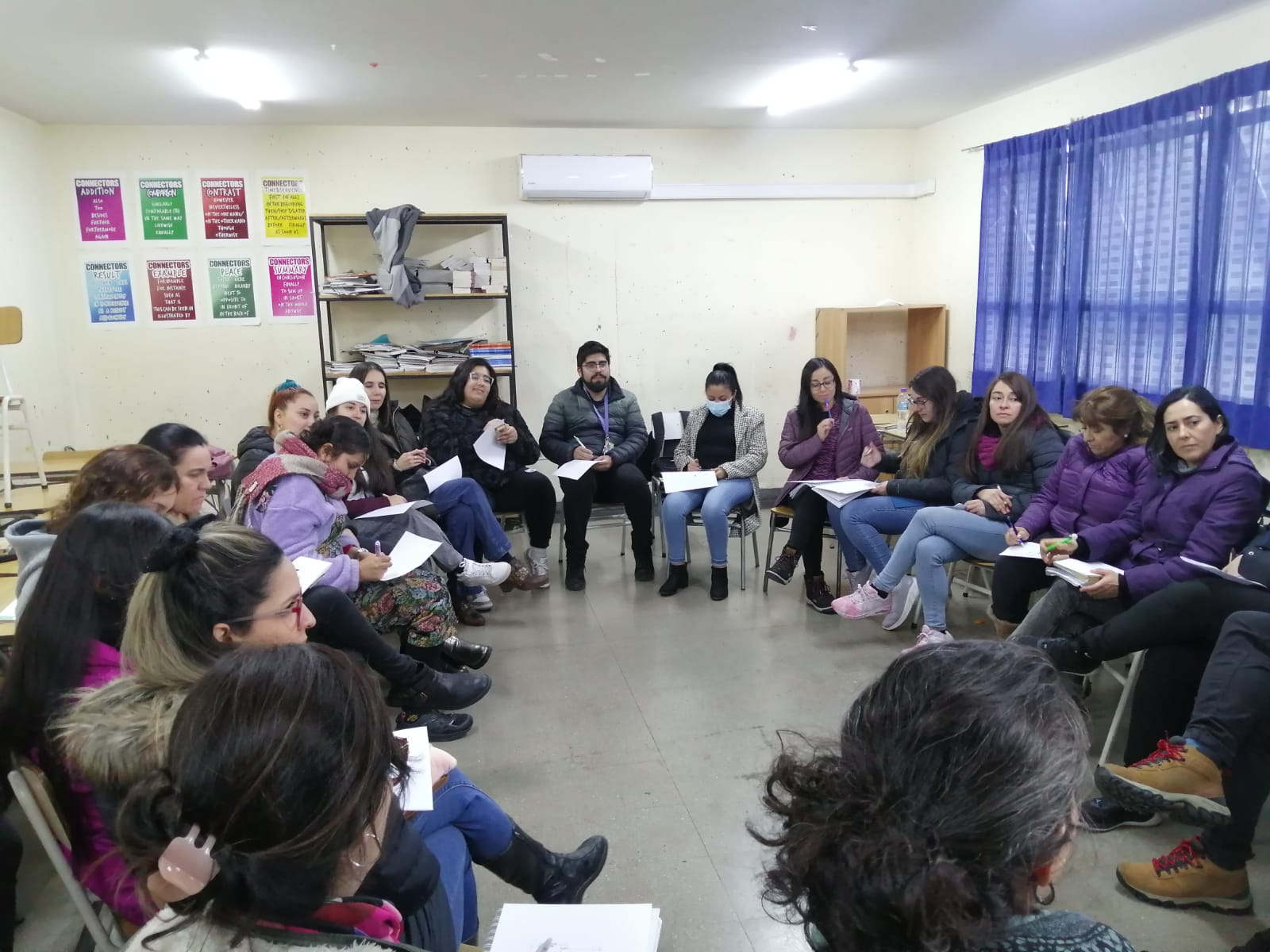 Actividad de contención emocional para el profesorado, realizada durante el consejo de profesores, organizada por HPV y el departamento de orientación. Esta actividad tuvo como objetivo proporcionar apoyo emocional y herramientas prácticas para el manejo del estrés, así como fomentar un ambiente de trabajo colaborativo y positivo.